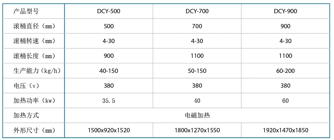 電機(jī)通過變速傳動。帶動滾筒連接軸,使?jié)L筒在托輪的支撐下旋轉(zhuǎn),同時滾筒在電磁線圈發(fā)熱的作用下被加熱,這樣邊旋轉(zhuǎn)邊受熱,使?jié)L筒內(nèi)的物料均勻受熱,從而達(dá)到翻炒的目的,筒體轉(zhuǎn)速采用變頻調(diào)速。根據(jù)不同物料調(diào)節(jié)合適轉(zhuǎn)速有定時、控溫、溫度數(shù)顯功能,提高電磁線圈的使用壽命,散熱均勻。
