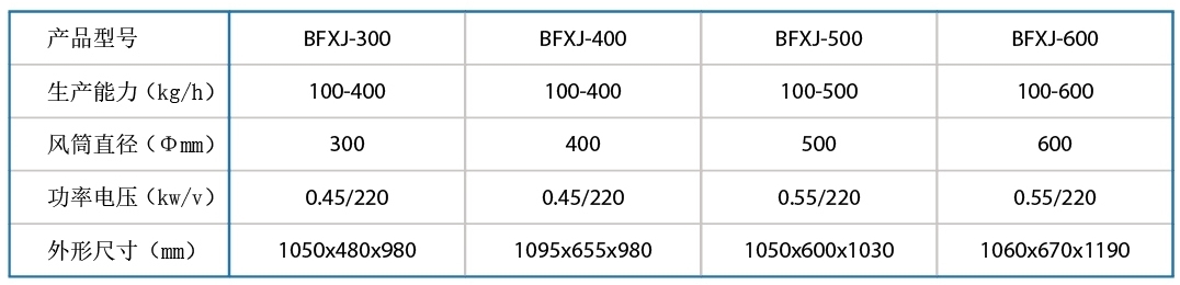 主要用途: 物料經(jīng)過料斗均勻下流,通過風機強風的作用,將物料中的粉塵、皮、葉分離出去,得到理想的物料。 適用范圍: 各種中藥顆粒狀物品。 主要技術(shù)參數(shù)